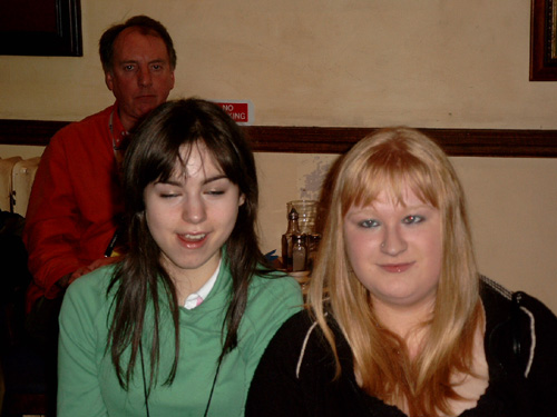 Hannah and another Joanne. Look at the utter look of hate on the face of the bloke behind them.